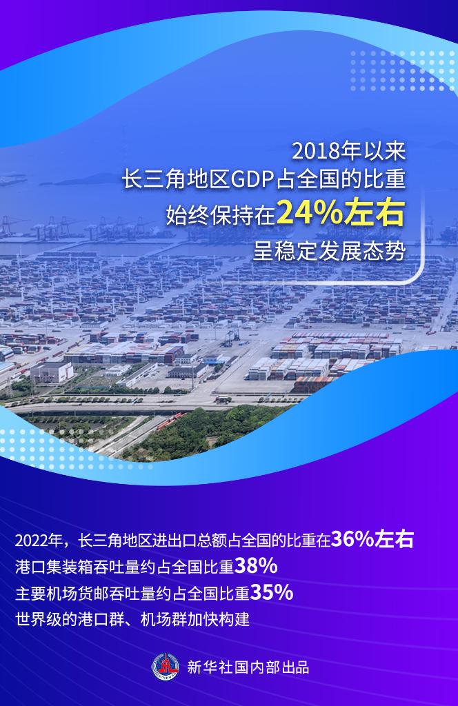 统计数据显示,2018年以来,长三角地区gdp占全国的比重始终保持在24%左右,呈稳定发展态势。gdp过万亿元的城市从6个提升到8个,约占全国万亿城市总数的1/3。
