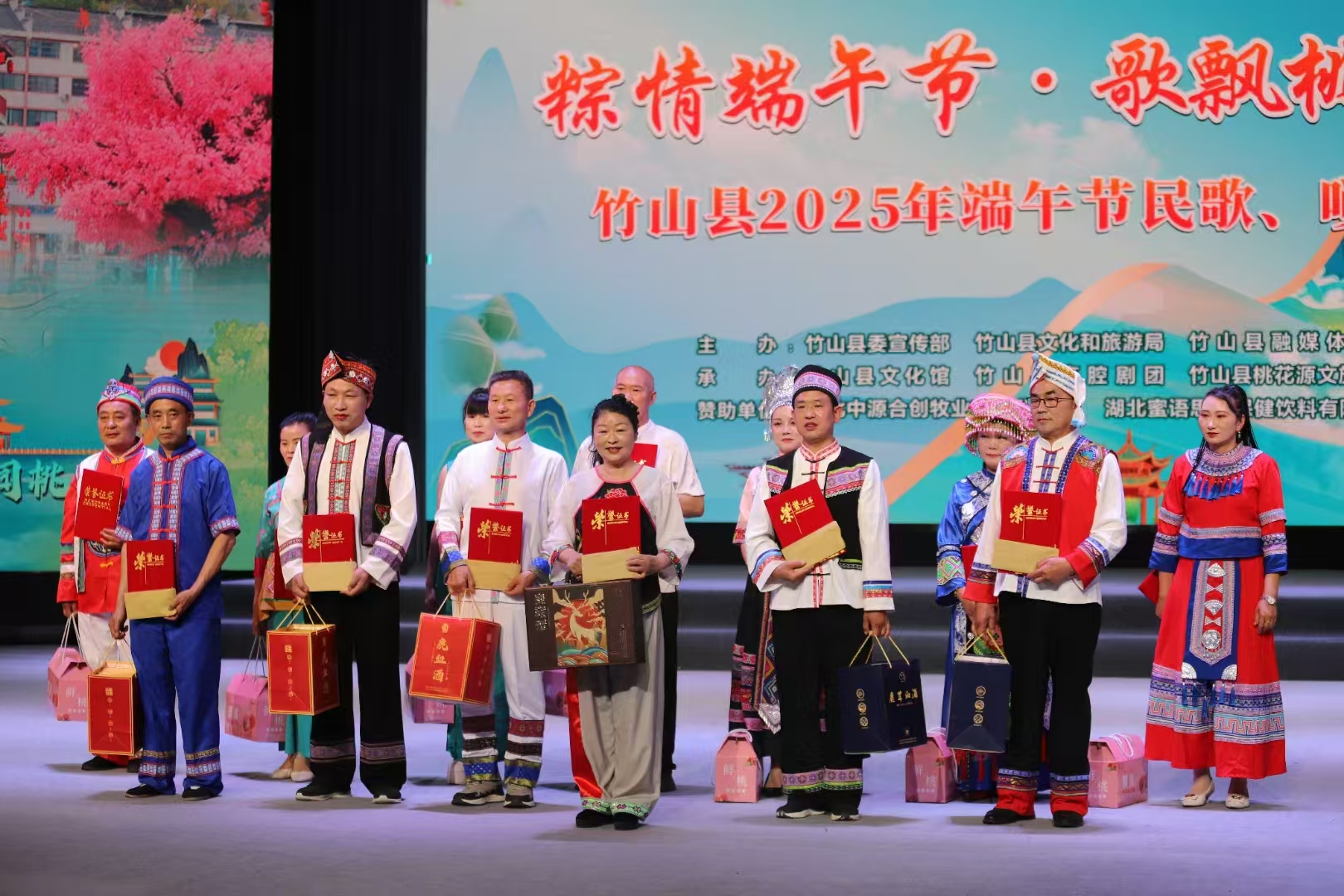 今日竹山网消息 5月31日,竹山县“粽情端午节·歌飘桃花源”端午节民歌、唢呐比赛在桃花源街区女娲广场举行。楼台乡民歌代表陈兴全参赛,凭借出色演唱和深厚功底,在比赛中荣获三等奖。