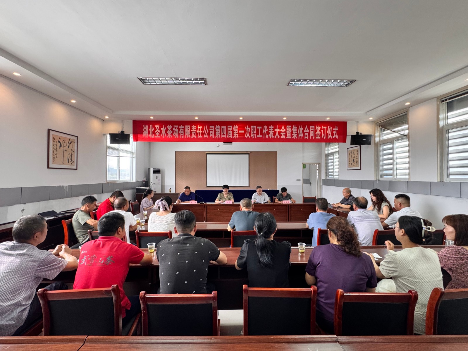 今日竹山网消息 6月19日,湖北圣水茶场有限责任公司第四届第一次职工代表大会胜利召开,公司职工方代表、行政方代表25人共聚一堂,同步完成工会换届选举与“1 4”集体合同签订,为企业高质量发展注入新动能。