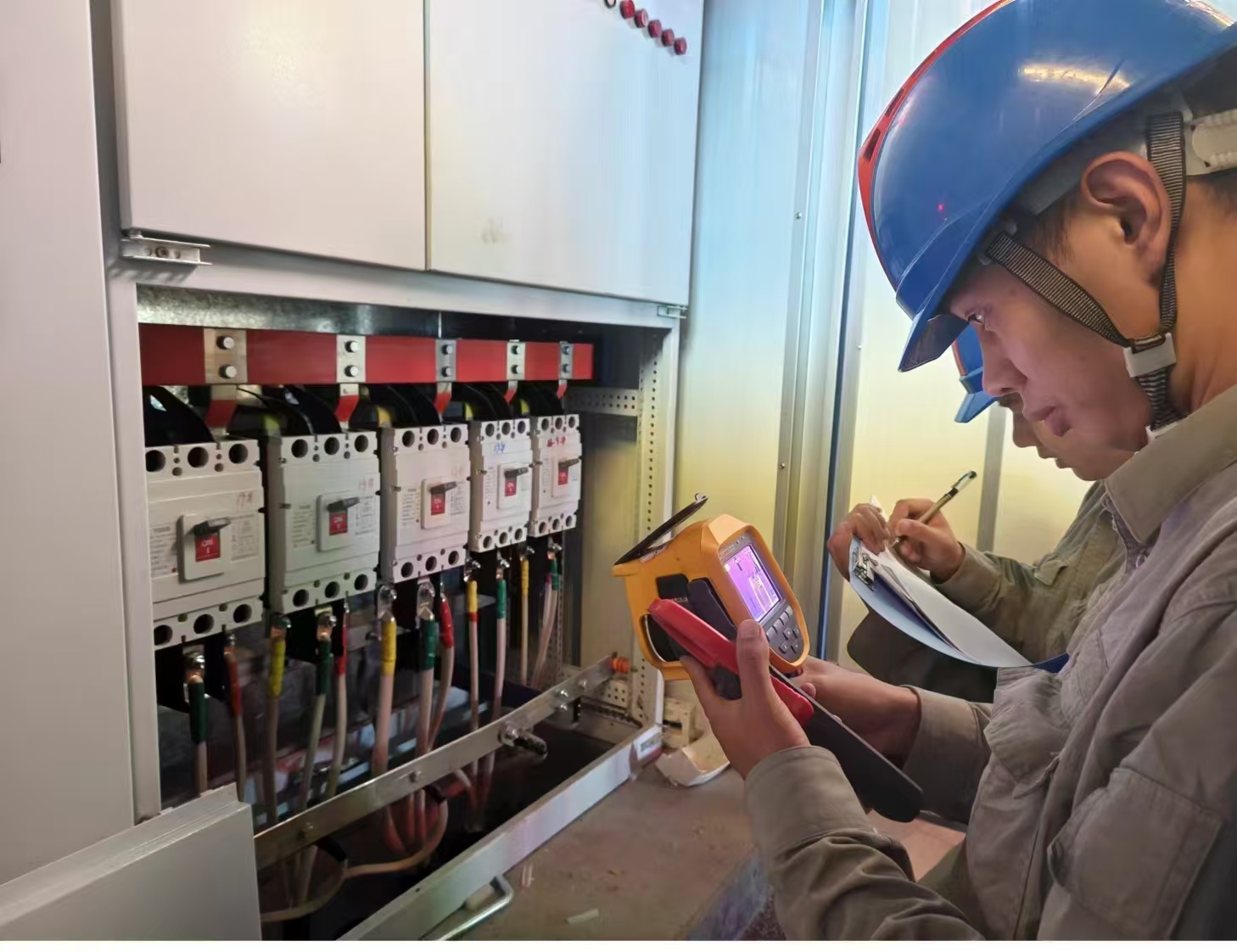 今日竹山网消息 “2号配电柜a相刀闸37.2度、b相刀闸37.3度、c相刀闸38.2度,温度正常。”7月7日,在宝丰镇施洋大道,国网竹山县供电公司宝丰供电所配网运检人员正对配电柜刀闸温度、杆塔基础进行检查。