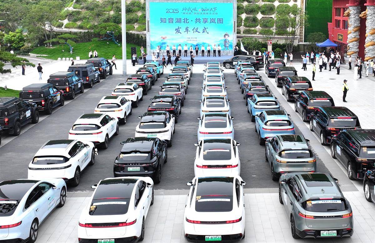 50辆汽车从武当山出发开始“神武峡”自驾游。(湖北日报通讯员 张启国 摄)
