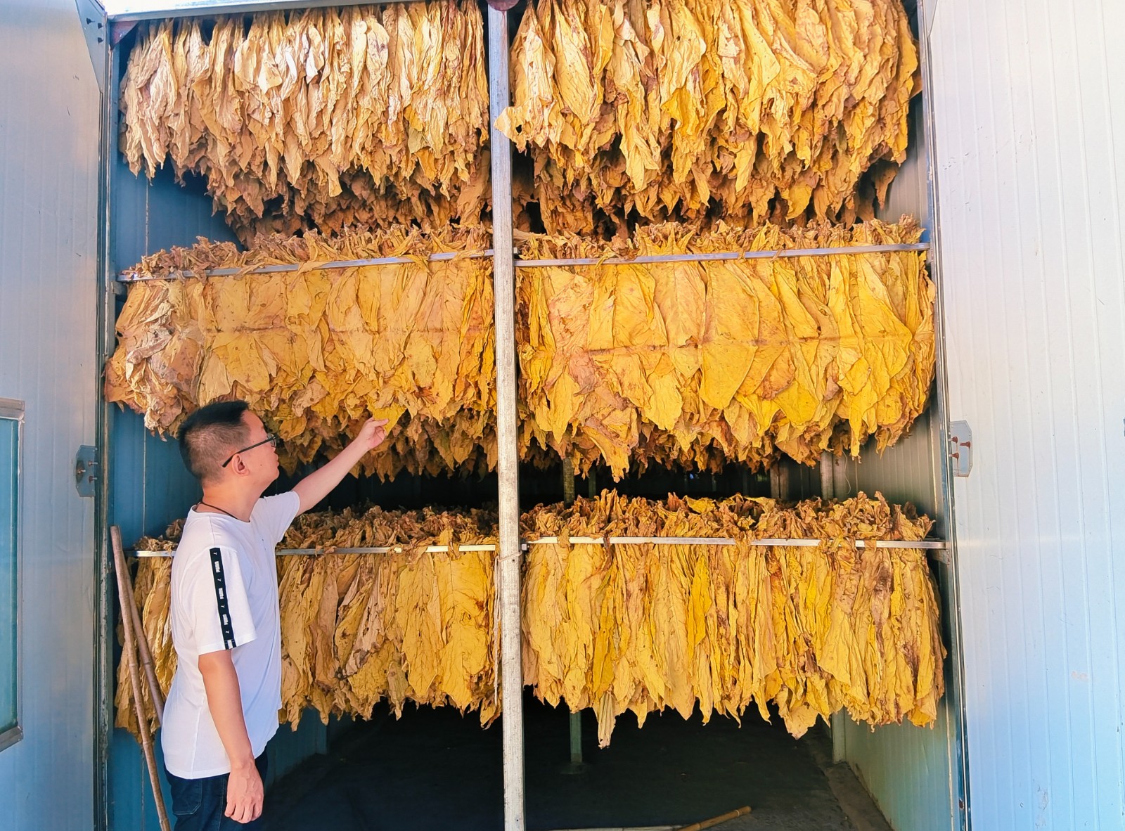 当日,屏峰村“两委”班子与驻村第一书记第一时间深入烤房,查看烟叶品质。只见出炉的烟叶色泽金黄、质地柔韧,醇香四溢。王军介绍,今年烟田长势喜人,丰收在望。