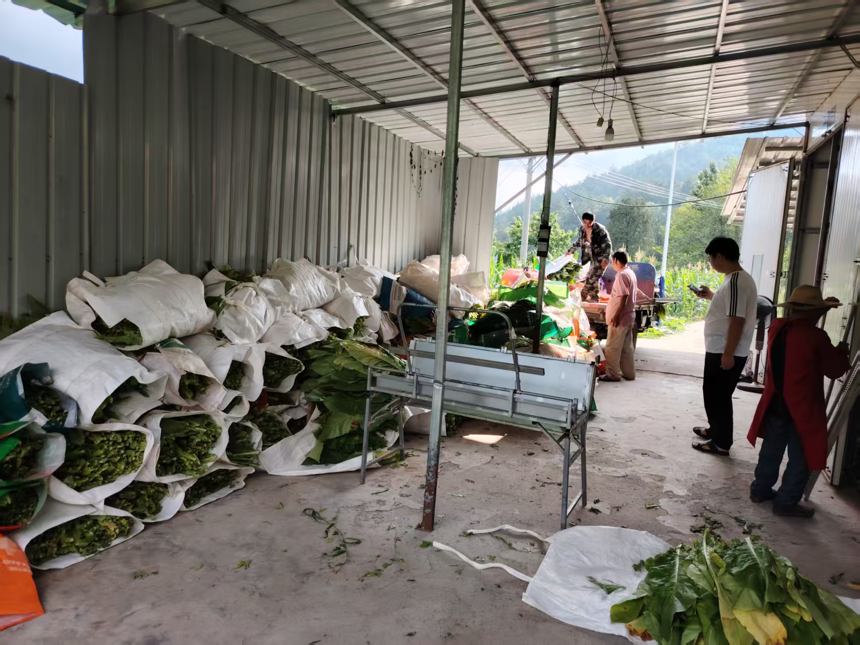今日竹山网消息 近日,走进大庙乡黄兴村土地岗烟地,烟农们熟练地采摘、搬运烟叶,装车拉往烤烟房进行烘烤。