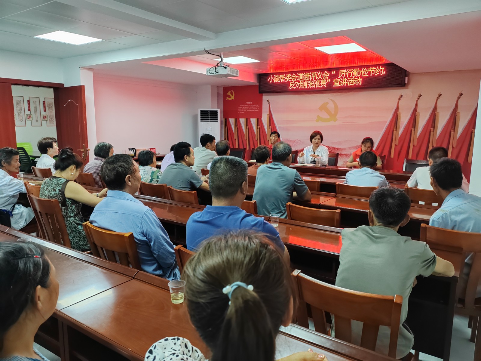 今日竹山网消息 7月24日,潘口乡小漩居委会道德评议会组织召开“厉行勤俭节约 反对铺张浪费”专题宣讲会,50余名居民代表参与。